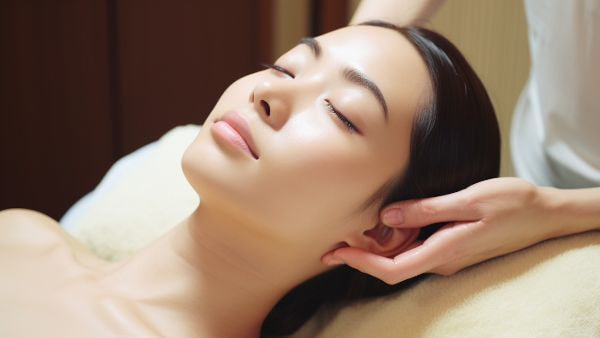 首肩、頭顔。ほぐして目指すリフトアップ。首肩〜顔頭、耳まわりをほぐすことでスッキリとしたお顔に。